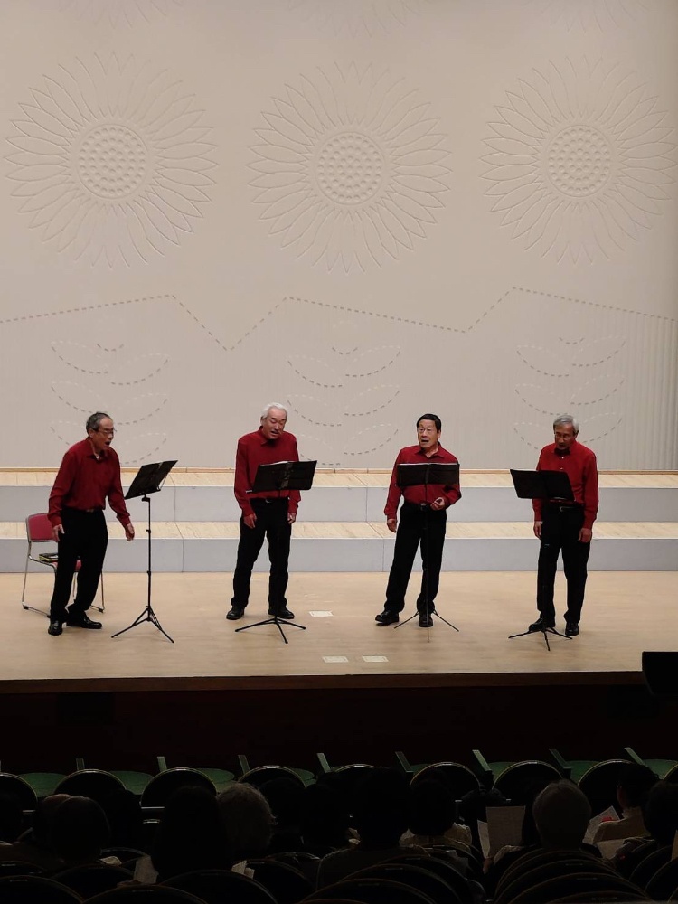 音楽交歓会本番のVoiceVoxさんの演奏、ノーマイクでハーモニーが綺麗に丁寧に歌われていて良かったです。選曲も良く観客に大変請けていました。(カルテット仲間からのコメントです)